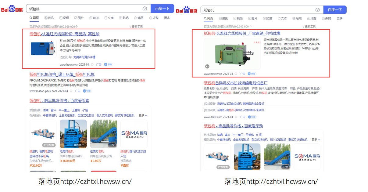 - 例:“纸包机”(PC和移动端案例关键词,提示:请在9:00-17:00时间内搜索)